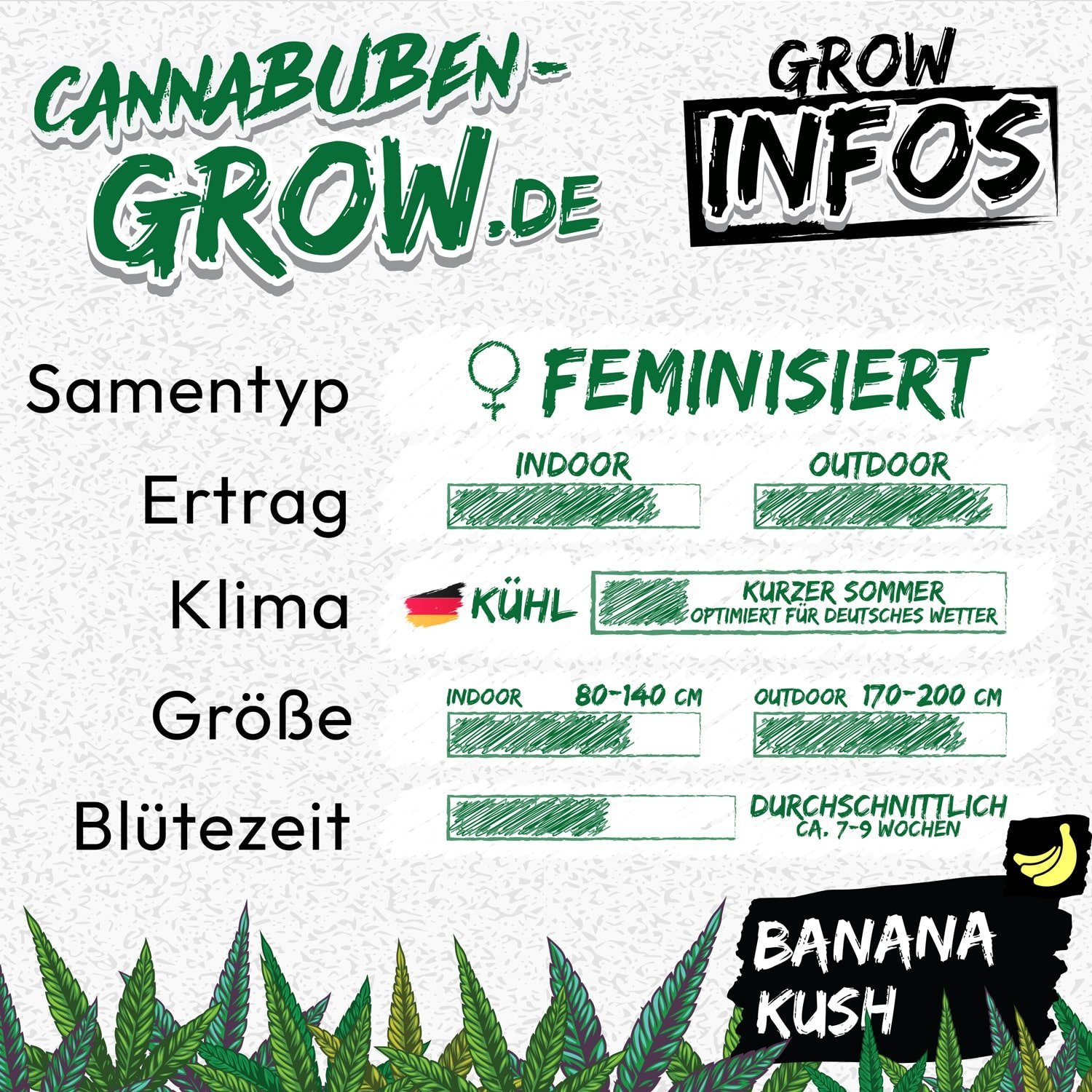 Mit strenger Selektion und Qualitätsprüfung stellen die Cannabuben sicher, dass jede Packung Banana Kush Samen die beste Genetik bietet. Perfekt für Züchter, die eine robuste Sorte mit herausragendem Aroma und starker Wirkung suchen