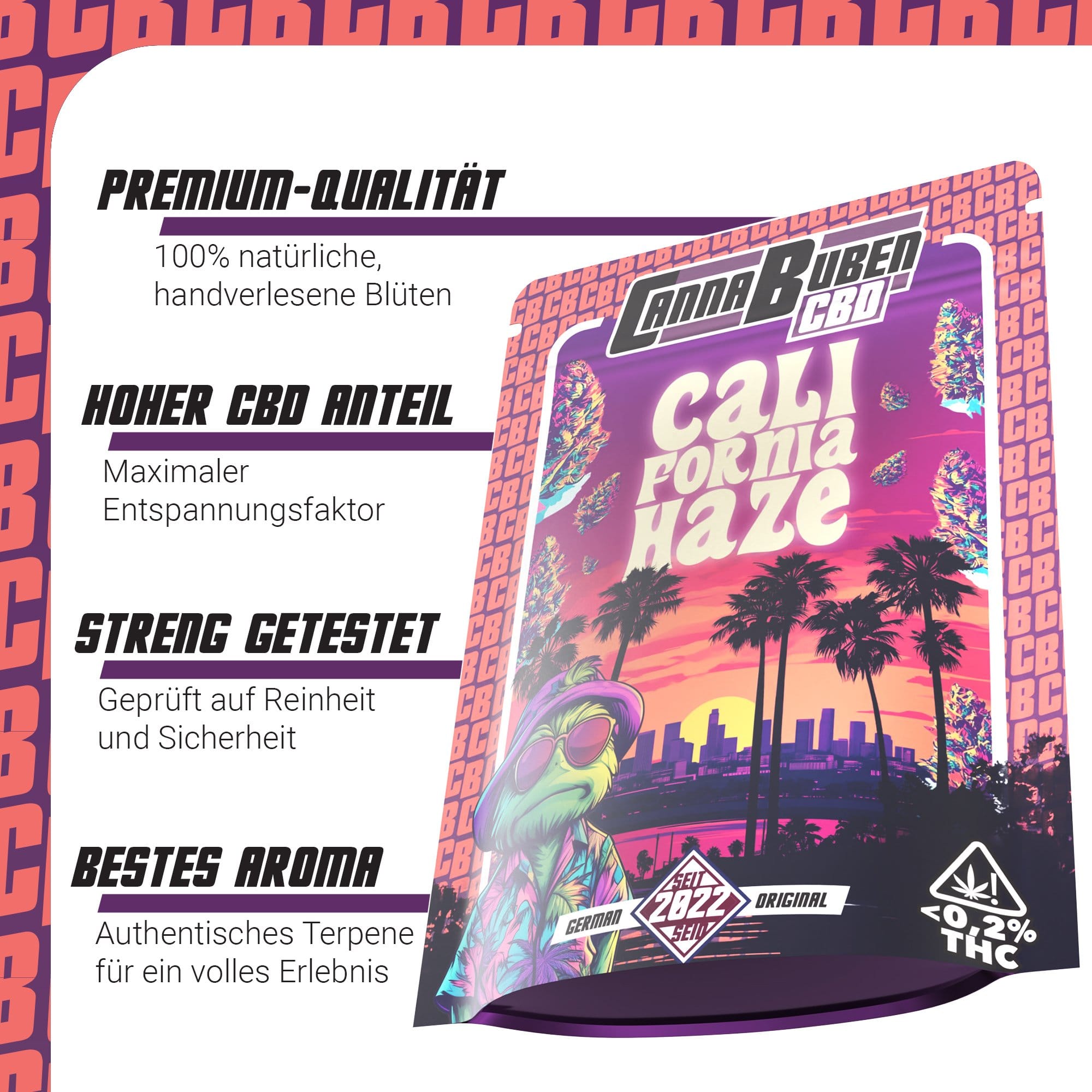 Egal, ob du nach einem stressigen Tag entspannen möchtest oder kreative Impulse suchst – die California Haze CBD-Blüten sind der perfekte Begleiter. Ihr ausgewogener CBD-Gehalt macht sie ideal für all jene, die innere Ruhe finden möchten, ohne dabei die Energie des Tages zu verlieren.