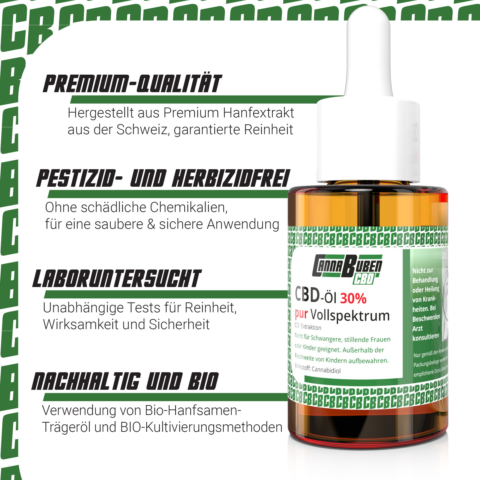 Erlebe die volle Kraft der Natur mit dem CBD Öl 30% von Cannabuben! Diese hochkonzentrierte Formel ist ideal für erfahrene Anwender, die maximale Unterstützung für ihr Wohlbefinden suchen. Mit einem 30%igen CBD-Gehalt bietet dieses Öl eine besonders intensive und effektive Wirkung.