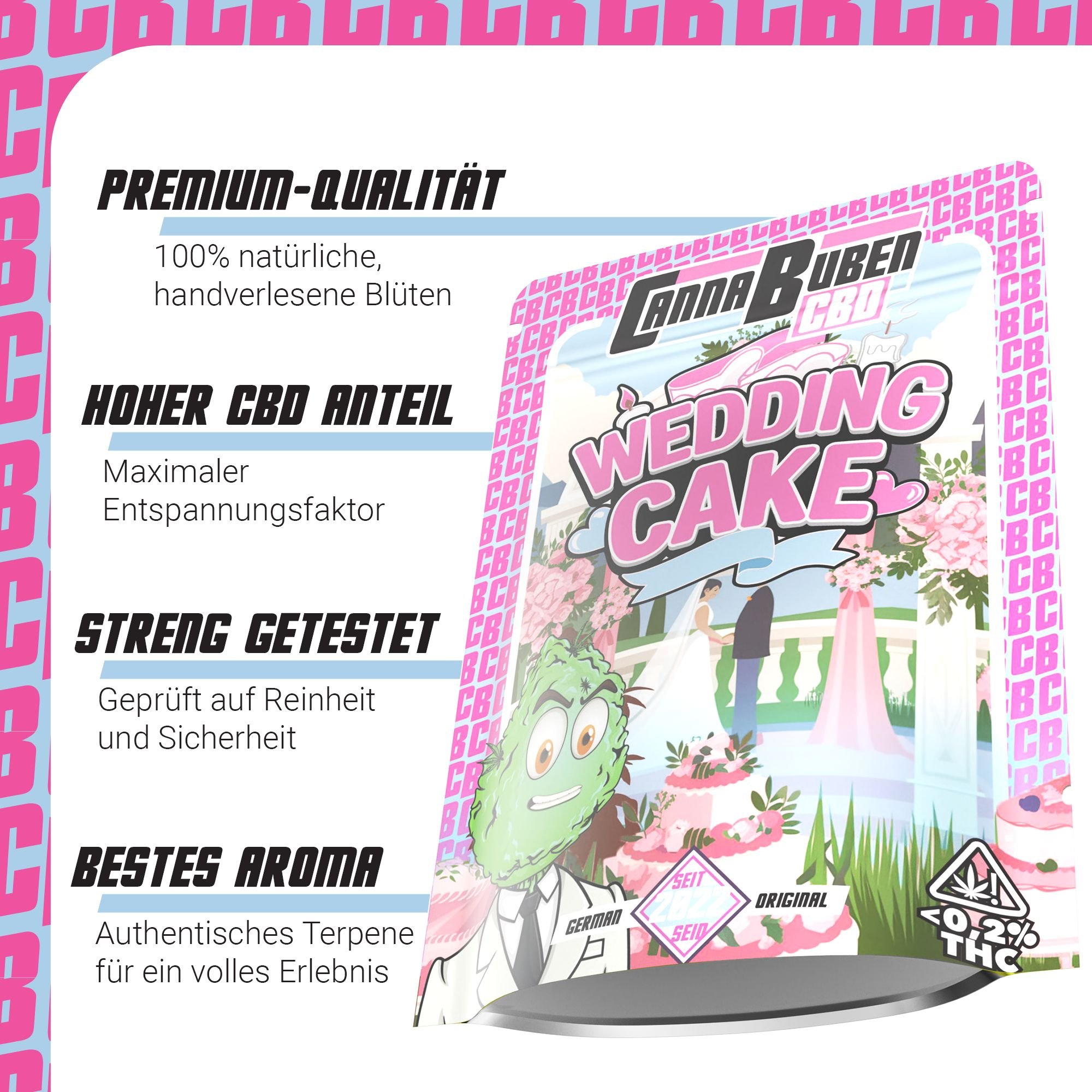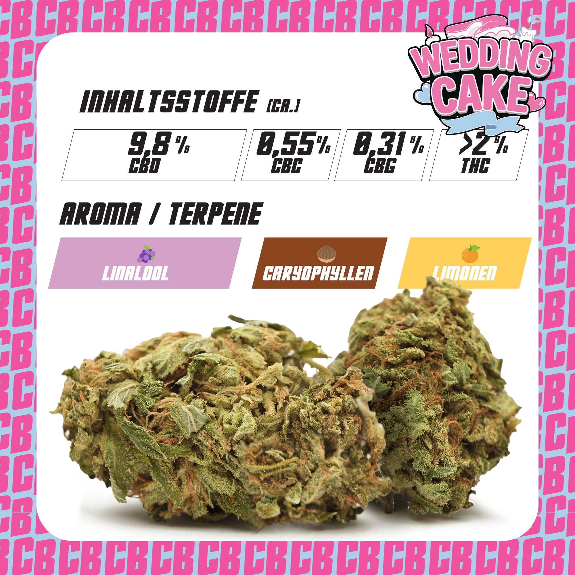 Die Wedding Cake CBD Blüten bieten ein einzigartiges Geschmackserlebnis mit süßen, cremigen Noten, die an frisch gebackenen Kuchen erinnern. Diese Sorte ist ideal für alle, die nach einem aromatischen und entspannenden CBD-Erlebnis suchen.